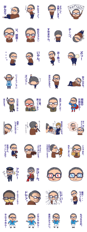 「お茶目なお父さん」シリーズの第二弾! お父さんだって可愛いスタンプ使いたい!アカギシズカ より発売