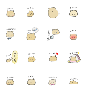 ハムスターみたいなねこ、はむねこの、のんびり優しいスタンプです。 まるくてもちもちしています。ゆるっと気持ちを和ませます。くらげ より発売
