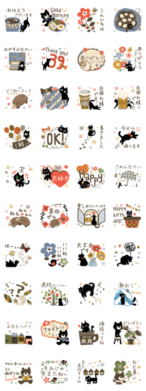 北欧インテリアや雑貨が好きな人は是非。クロネコやハリネズミ、クマ、うさぎ、カエル、ふくろう、お花や植物、リボンなどの落ち着いた色の大人かわいいスタンプがいっぱいmtorak より発売