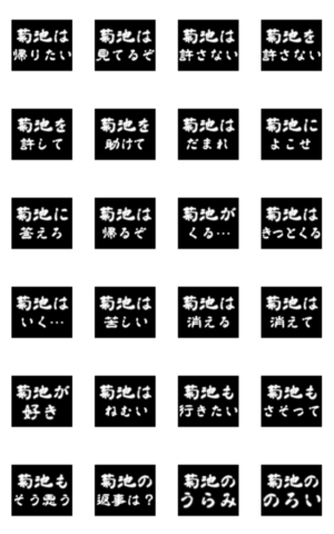 菊池さんスタンプ、文字だけですがホラー感があって面白いとおもいます!!