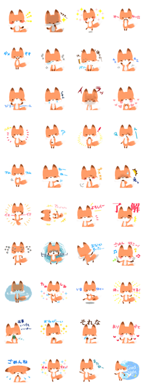 ふわふわきつねのあべかわさん スタンプ画像一覧