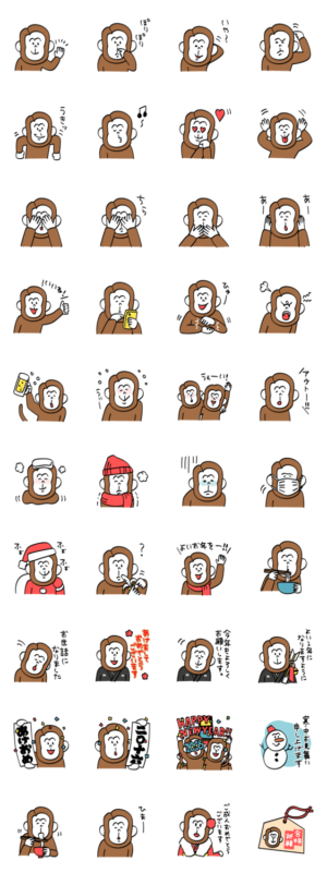 七三分けのおしゃれなお猿さんが、年末年始など冬のイベントスタンプになっています☆
