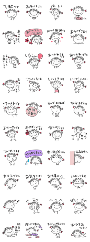 くるリボンの女の子がキュートな敬語挨拶のスタンプです。シンプルなデザインがイイです!