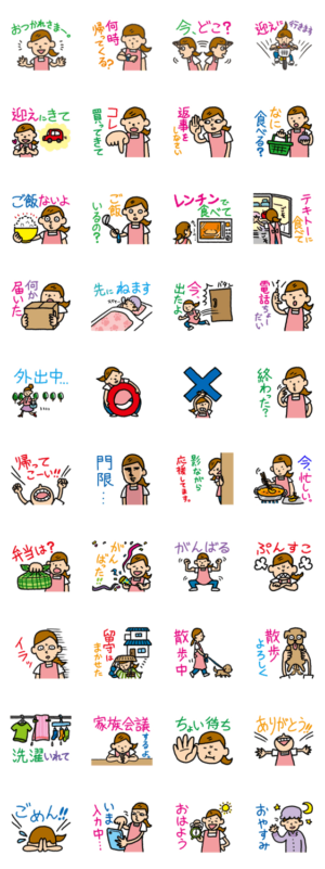 お母さんから子供へ送るスタンプ。日常会話なので、文字入力が苦手なお母さん、お父さんへのプレゼントにも最適です。マツボン より発売