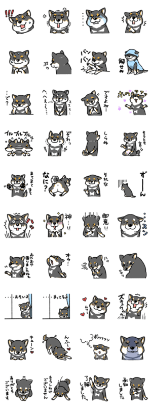 ワンコ大好きなマキナルこと真希ナルセによる柴犬好きのためのスタンプです。黒柴のリアクション編です。