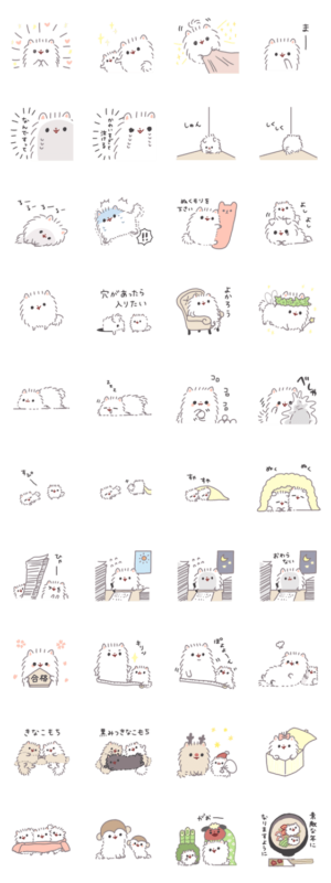 お餅みたいなポメラニアン"もち"のスタンプ。シリーズ第7弾です。年末年始のばたばたやクリスマス・お正月に使えるものも入っているよmal より発売