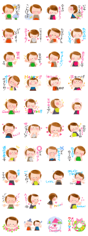 きいろちゃんのお友達「チャコちゃん」。 ポップな洋服を着て日常会話を元気に盛り上げます。 クリスマススタンプも作ったよ。tako より発売