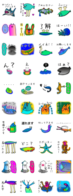 かっこいい海の生物スタンプを作ってみました。こばりん より発売