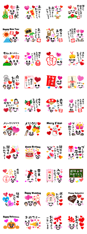 誕生日や結婚など、おめでたいお祝い事やクリスマス・お正月・成人式・バレンタイン・入学・卒業などの色々な行事に、ハートがいっぱいのラブラブな『おめでとう』を!