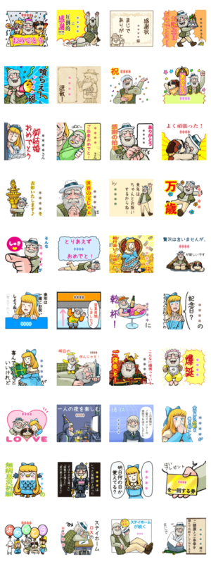 アルムの山から元気と笑いを届けます♪「ちゃらい」おんじ=ちゃらおんじたちが全力でお祝いしてくれるスタンプです。
