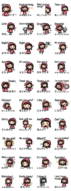 | Thanks. おおきに | Thank you. ありがとぉ |