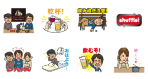 Mmラジオのパーソナリティー、ホタコンと野田くんのラインスタンプだよ! 店長のホタコンが飲んだくれてます。バイトリーダーの野田くんはお酒に付き合って大変なことに