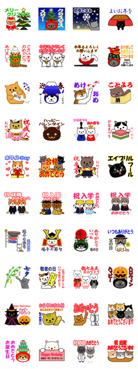 お正月やクリスマスなど年間イベントを可愛くて素朴なニャンコが祝ってくれる、とても重宝するスタンプです。