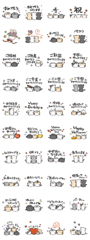 墨筆ねこ 集めました3【お祝い】 スタンプ画像一覧