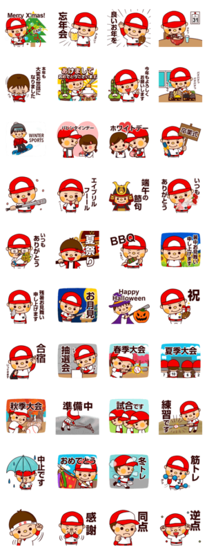 野球好きから野球関係の方も使いやすい!やまと君のお正月、誕生日、クリスマス、大会、合宿等の年間イベントやお祝にも【たかせゆづき】スタンプたかせ ゆづき より発売