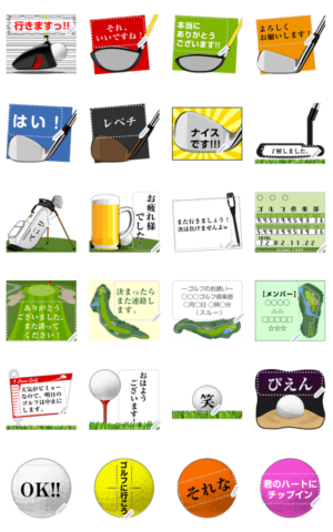 ゴルフスタンプ(メッセージスタンプ) スタンプに書いてある文字一覧