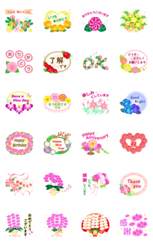 動く♪ランランお花を贈ろう スタンプ画像一覧