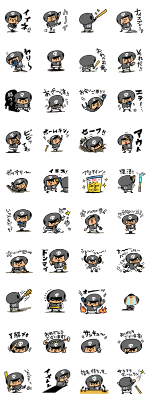 楽しくかわいい!使える野球専用スタンプ4。プロ選手、クラブチームや草野球、社会人、保護者に使ってほしい、応援スタンプ。イラストレーターtunスタンプ第74弾tun より発売