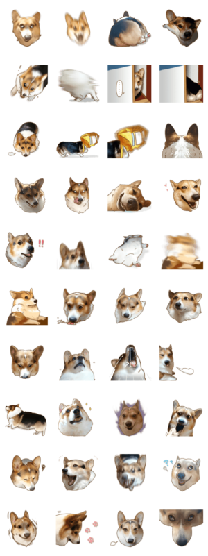 テンション高め変顔モリモリのコーギースタンプ。カワイイだけじゃ生きていけない。ぎん より発売