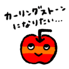 カーリングストーンにを夢見るりんご「かーりんご」のスタンプです。いつでもポジティブ!日曜日のデザイン より発売