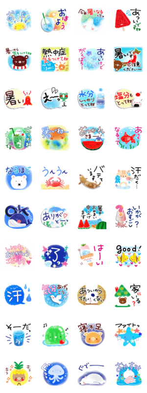 夏・暑い日・夏季に楽しく使えるスタンプセットです。 ~猛暑・熱中症・暑さ対策・暑中お見舞い・挨拶~ようこ より発売