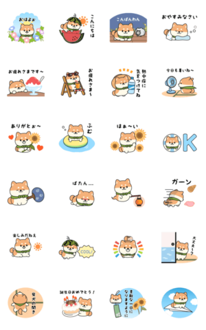 夏らしいモチーフが沢山でかわいい!マイペースな喋り方が可愛い柴犬のアニメーションスタンプです♪DECOR より発売