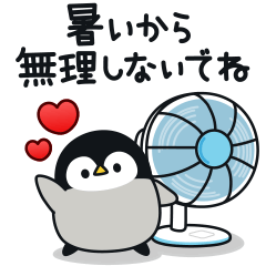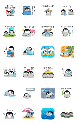 恋人や家族や友人に!やさしく気づかいのできるペンギンの赤ちゃんたちの暑い夏に役立つアニメーションスタンプです♪