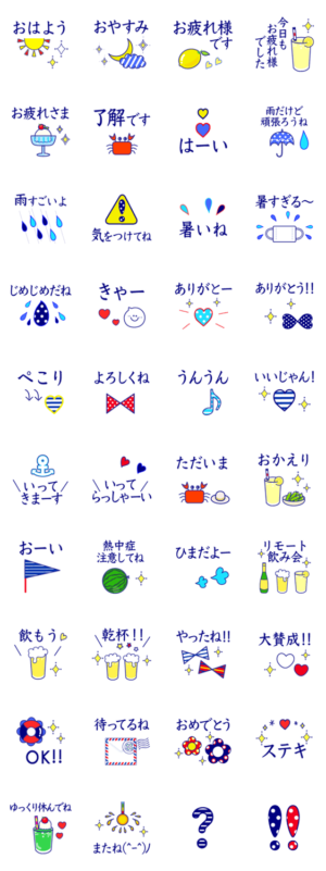 大人女子の大きな文字のマリンスタンプです♪涼しげなカラーで暑い夏を爽やかにしてくれます♪夏/梅雨/マリン/真夏/暑い/熱中症/マスク/日常/挨拶/リモート飲み会/宅飲み