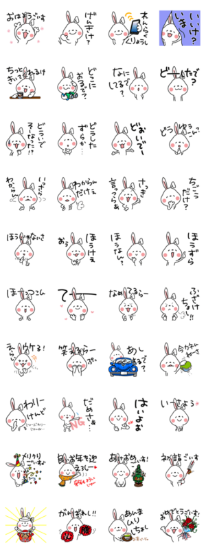 うさへい(可愛い白うさぎ・ウサギ・兎)の山梨県の方言、甲州弁(山梨弁)スタンプ第二弾です。クリスマス、お正月、受験必勝合格など年末年始に使えるスタンプ入りです。はしいなみ より発売