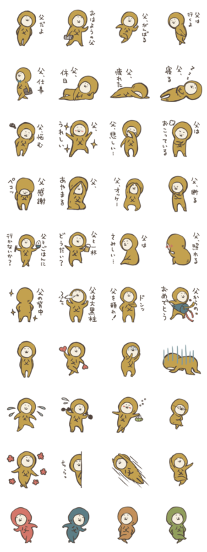 お父さん、家族とのコミニュケーションにどうでしょう。 ゆるく可愛く使いやすいスタンプです。o-mori より発売