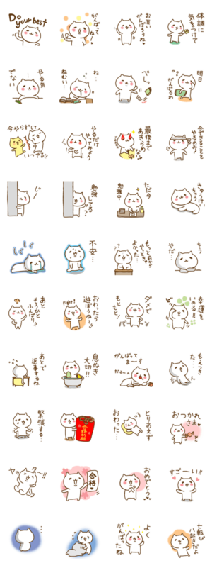 大学、高校、資格試験、国試などの受験生やその親、友達や恋人のためのスタンプです。祈・合格ね子 より発売