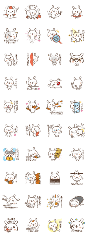 自分に正直に生きているうさぎ「かなうさちゃん」のスタンプ第5弾!節分など冬に使えるスタンプも収録。