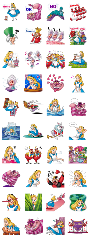 ふしぎの国のアリスのスタンプです。にぎやかなスタンプをラインに飾ってトークを盛り上げましょう。