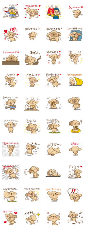 限りなく人間に近い犬、トイプードルのぷう太郎スタンプの第6弾です。satoco より発売