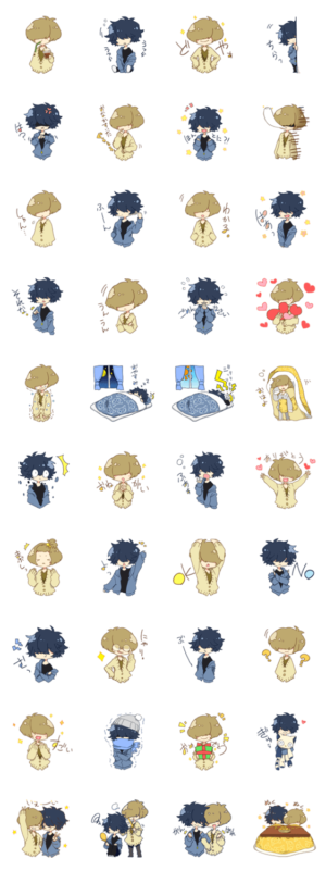 マッシュの久遠と天パの佐藤がだらだらしてるスタンプのちびキャラ編です。椿つばる より発売