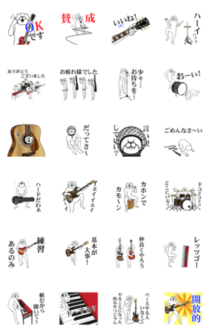 なめらかに動くネコが日常生活の中の気持ちを楽器で伝えるスタンプ。スタンプ・クリエイター「ベルだぬき」とのコラボ。楽器、音楽、軽音、ロック、バンド、ミュージシャンミュージックネットワーク より発売