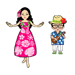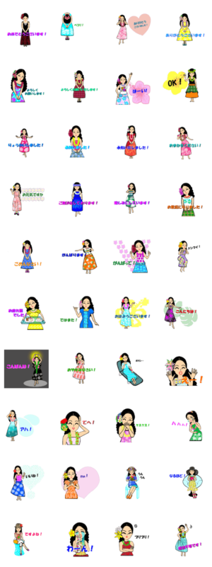 フラ大好きな「天然ママ・くりかつ」は火曜と金曜のレッスンに夢中。だからスタンプ2つ目のフラダンス編を作っちゃった。これ使ってグループLINE盛り上げちゃおう!オバンギャル・ド・クリカツ より発売