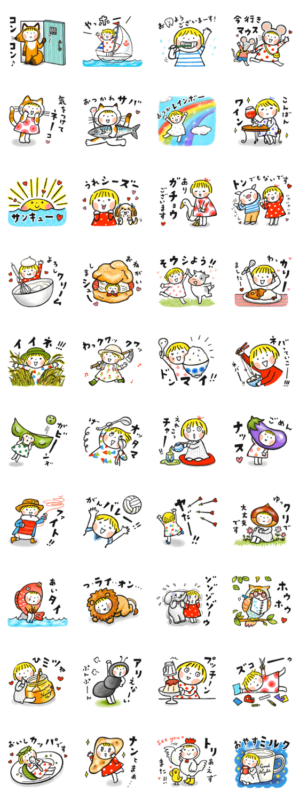 ダジャレで気持ちを伝えましょ♪(再販) スタンプに書いてある文字一覧