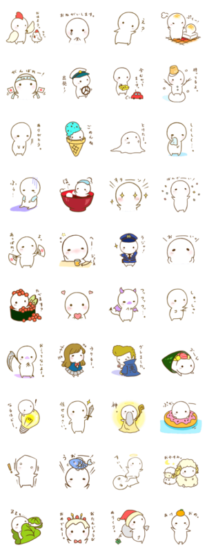 「しろまる。のゆるいスタンプ」第2弾です。今度のしろまる。はときどきコスプレもしています。しろまる。の得意なコスプレは白いたべもの。