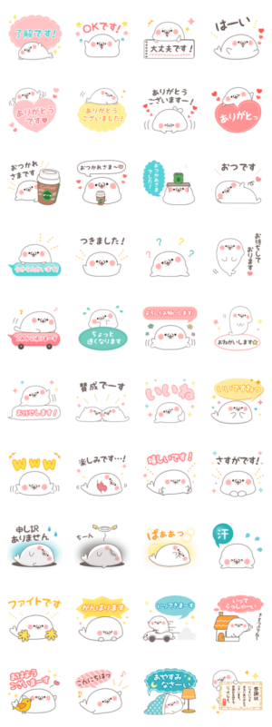 敬語あざらし第2弾!日常使いやすいお返事やお礼、挨拶などのゆるめの敬語スタンプです♪ジェリーフィッシュ より発売