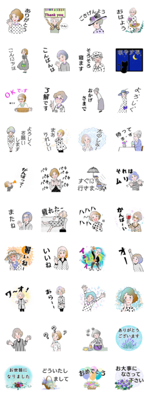 シニア女性、マダム達へ スタンプに書いてある文字一覧