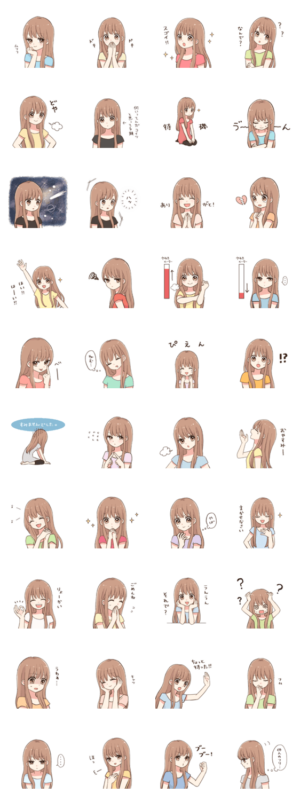 素直で百面相な女の子のスタンプです。よいこ より発売