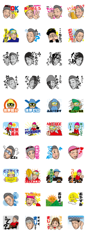 今日も元気な還暦越えスノーボーダー920ちゃん!日常会話から、雪山スノボ・スキーでも使えるスタンプです!