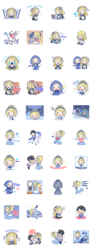 童話・シンデレラをモチーフに、魔法使い・王子様・トリ・ネズミが会話を盛り上げる、かわいくて使いやすいスタンプです!【ガールズ&アニマルシリーズ第7弾!】株式会社DK より発売