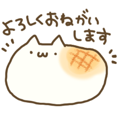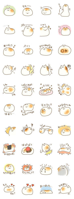 まるでお餅のようなねこのスタンプです。むしろにゃんこではなくモチかもしれません。ふくらんだり、焦げたり、伸びたり…。ご賞味あれ。ぽち より発売