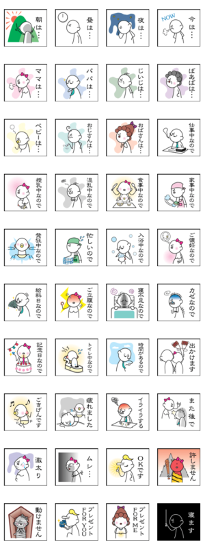 このスタンプはLINEで自由に組み合わせ、文字を打たなくても3コママンガ風に相手とコミュニケーションができる便利スタンプです。育児に関わる皆さんにオススメですよ。