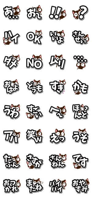 『小さい黒猫スタンプ』から白黒の【大文字】編になります。大きい文字を、白と黒でシックに仕上げています。白黒なので、逆に目立ちます。猫好きな方にぜひ。【かたこ】