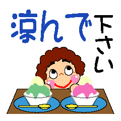 かき氷が大好きな元気なおばちゃんのスタンプです。