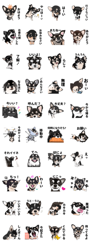 masajii作、黒チワワの日常生活スタンプです。犬(ワンコ、Dog)を愛する多くの皆さんに使っていただければ幸いです。Masajii より発売