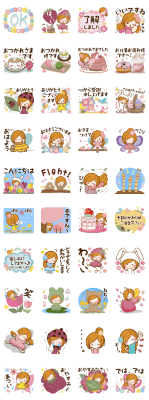 落ちついた優しい色合いが大人かわいい❤︎とにかく春〜初夏をたのしく明るく過ごせるようにと描きました♪春の挨拶はもちろん、日常にも便利な万能スタンプです♪☆
